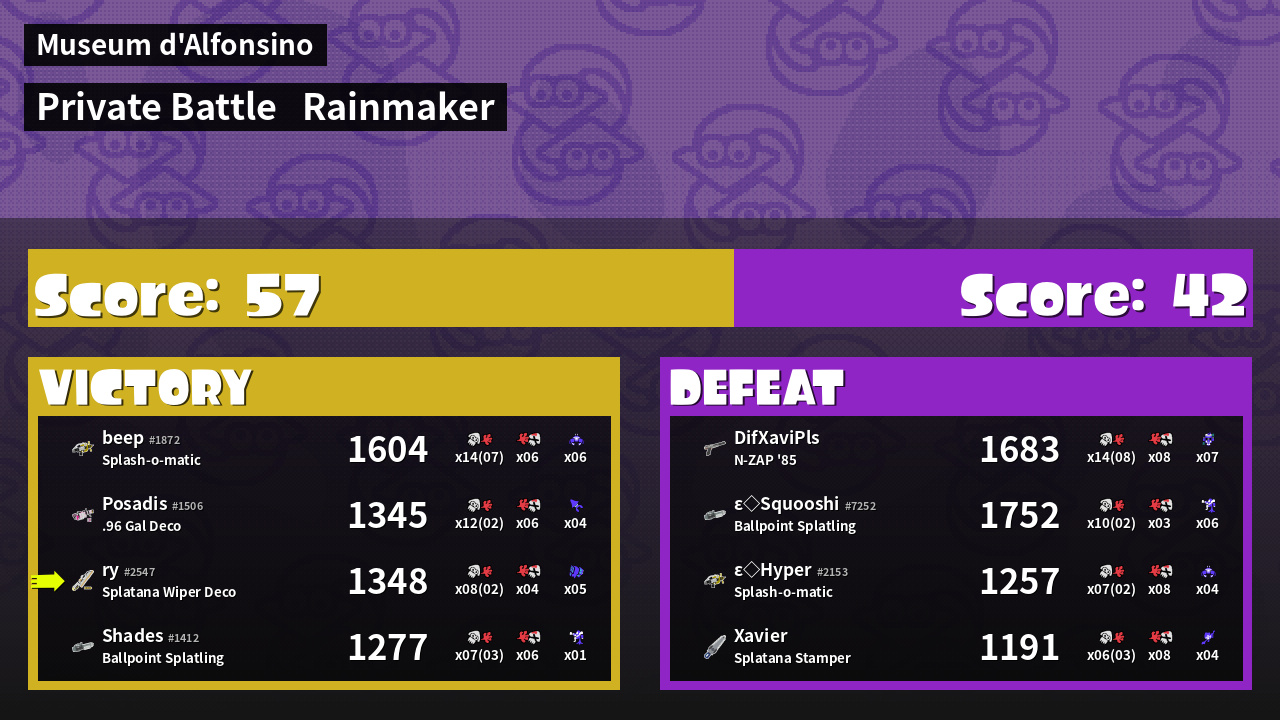 Kills / Deaths | 6 + 2 / 4 > Kill Ratio: 1.50 | ||