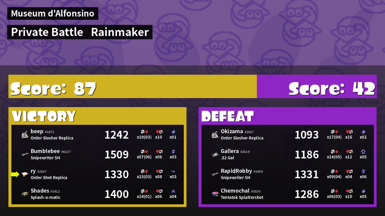 Kills / Deaths | 12 + 3 / 8 > Kill Ratio: 1.50 | ||