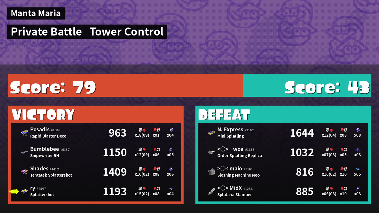 Kills / Deaths | 13 + 2 / 8 > Kill Ratio: 1.62 | ||