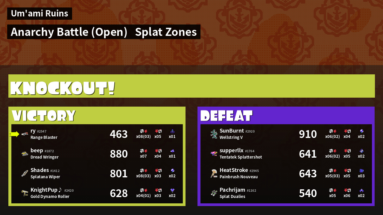Kills / Deaths | 5 + 3 / 5 = Kill Ratio: 1.00 | ||