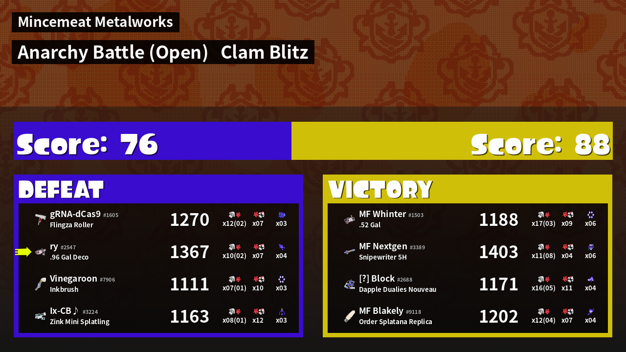 Kills / Deaths | 8 + 2 / 7 > Kill Ratio: 1.14 | ||