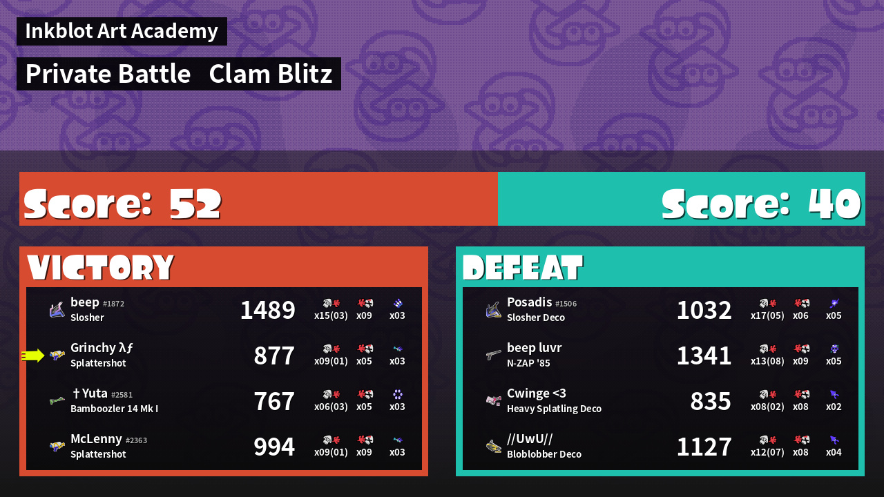 Kills / Deaths | 8 + 1 / 5 > Kill Ratio: 1.60 | ||