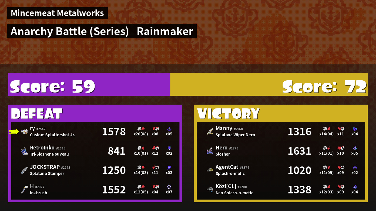 Kills / Deaths | 12 + 8 / 8 > Kill Ratio: 1.50 | ||