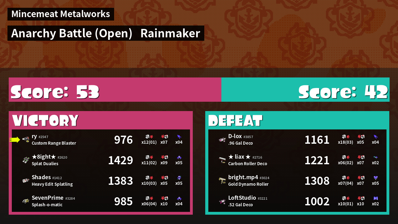 Kills / Deaths | 11 + 1 / 7 > Kill Ratio: 1.57 | ||