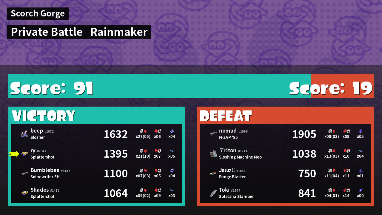 Kills / Deaths | 11 + 10 / 7 > Kill Ratio: 1.57 | ||