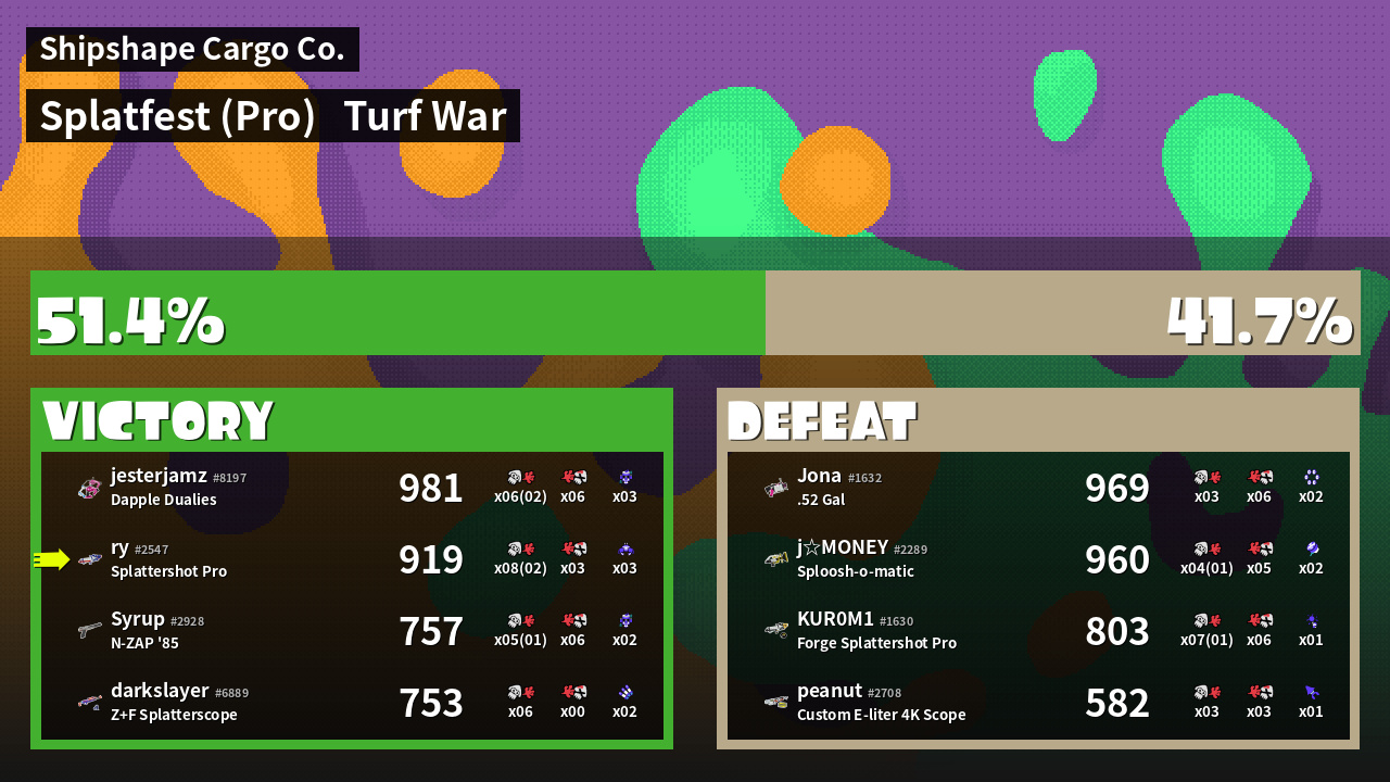 Kills / Deaths | 6 + 2 / 3 > Kill Ratio: 2.00 | ||