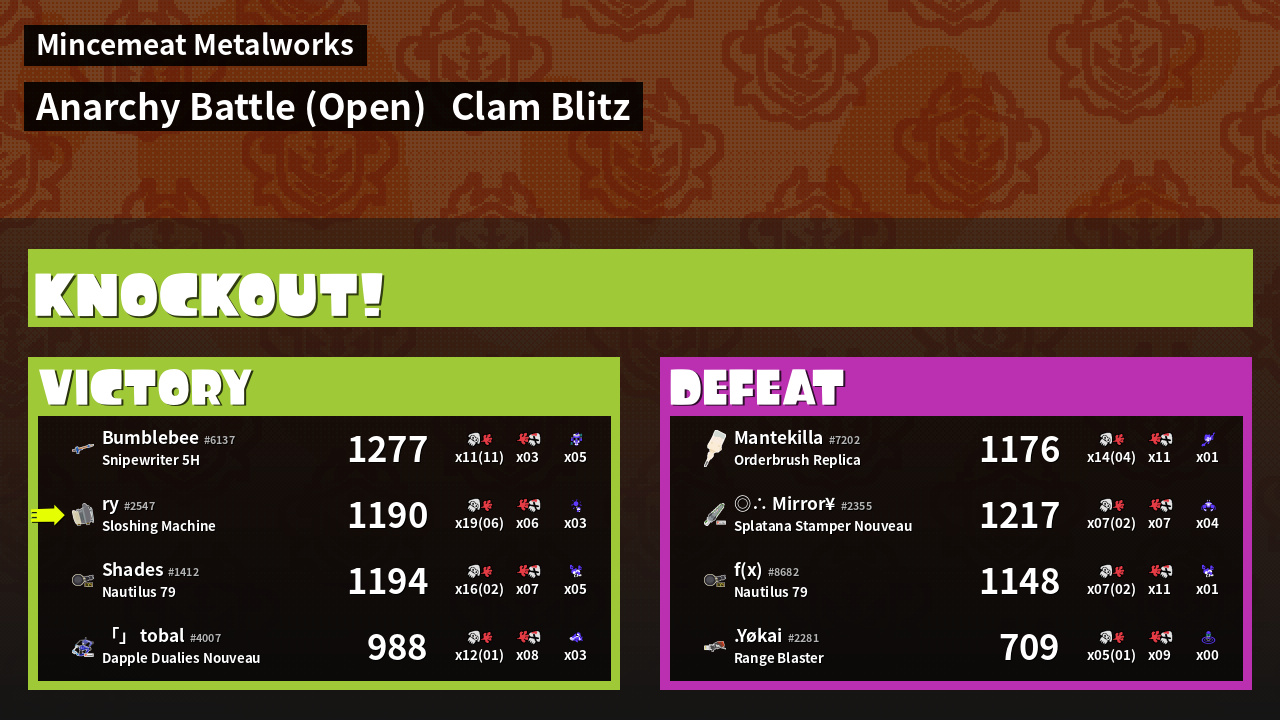 Kills / Deaths | 13 + 6 / 6 > Kill Ratio: 2.17 | ||