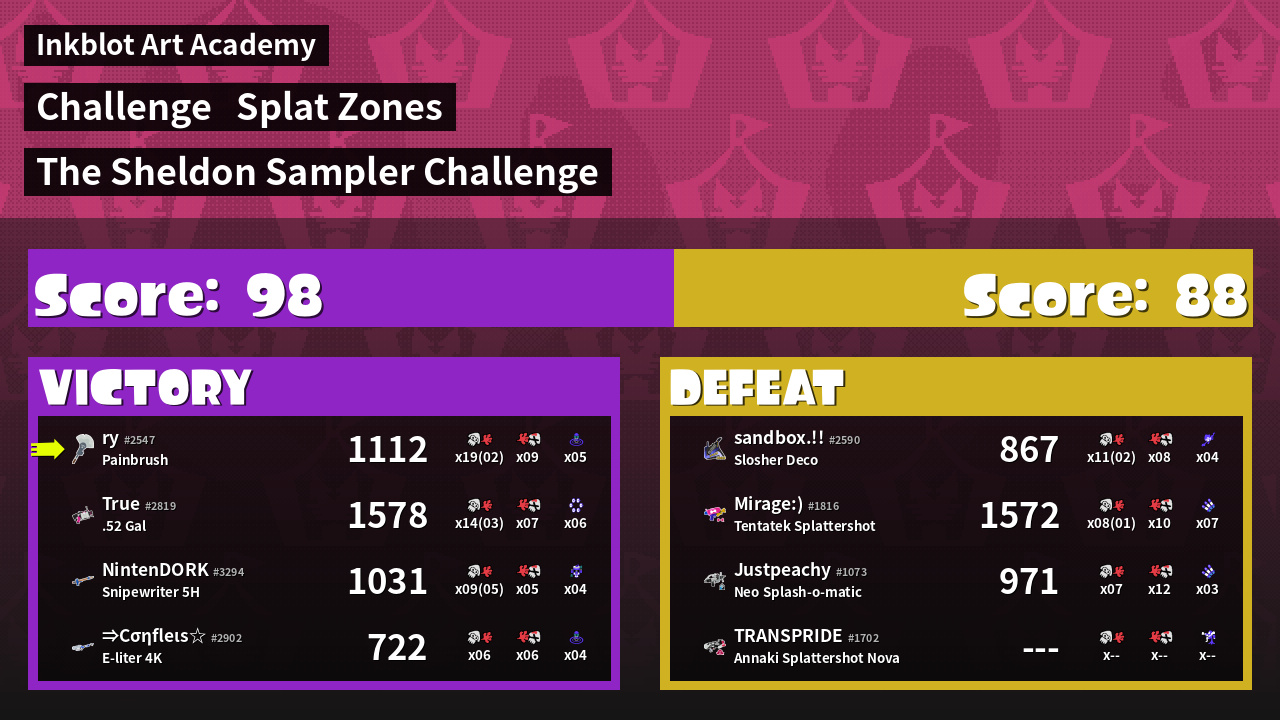 Challenge | The Sheldon Sampler Challenge Make the most of random weapons! | ||