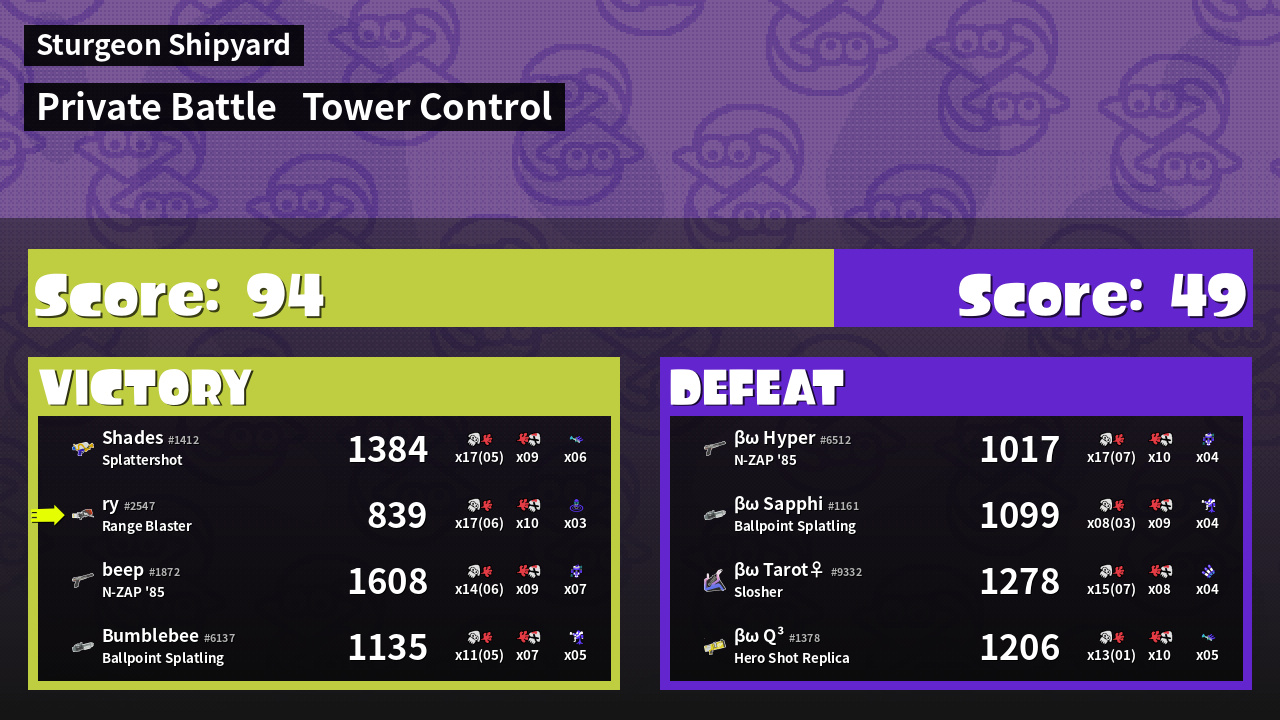 Kills / Deaths | 11 + 6 / 10 > Kill Ratio: 1.10 | ||