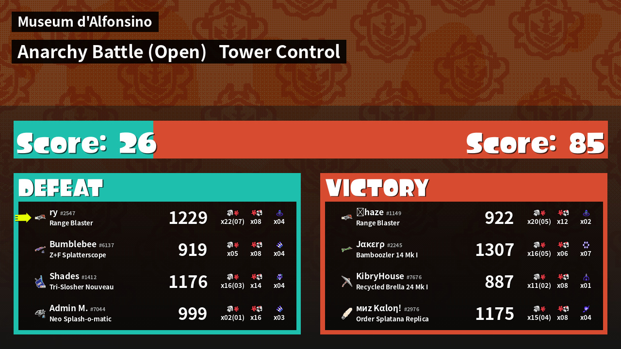 Kills / Deaths | 15 + 7 / 8 > Kill Ratio: 1.88 | ||