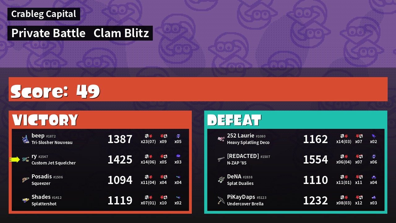 Kills / Deaths | 8 + 6 / 5 > Kill Ratio: 1.60 | ||