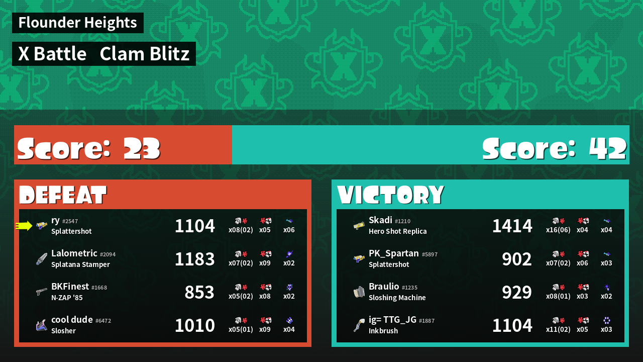 Kills / Deaths | 6 + 2 / 5 > Kill Ratio: 1.20 | ||