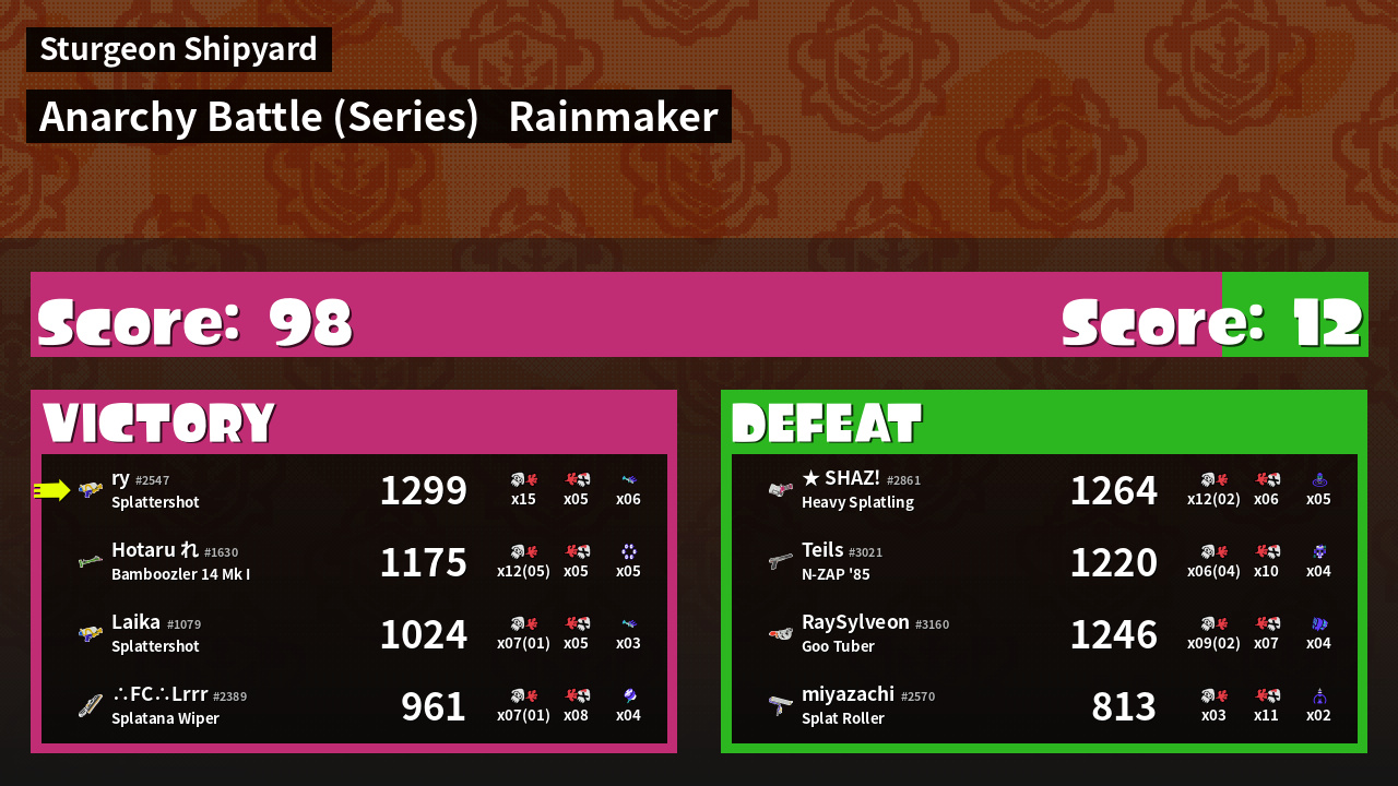 Kills / Deaths | 15 + 0 / 5 > Kill Ratio: 3.00 | ||