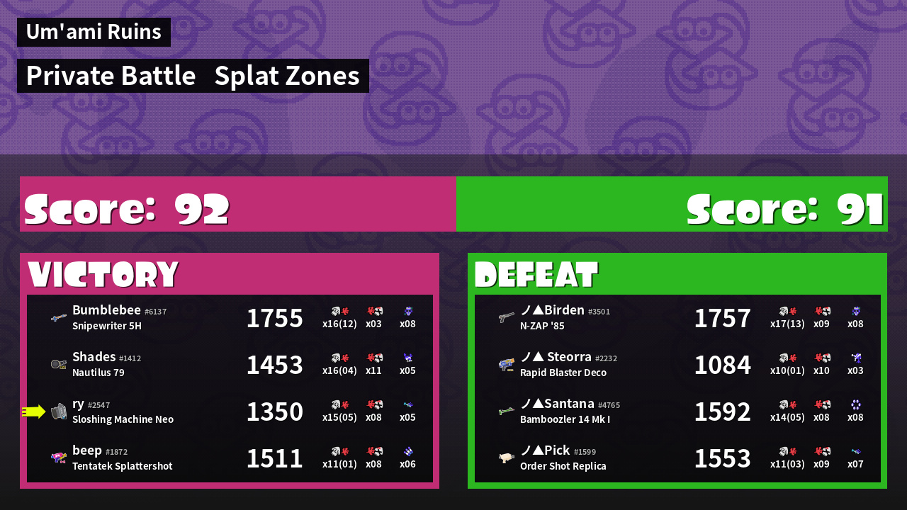 Kills / Deaths | 10 + 5 / 8 > Kill Ratio: 1.25 | ||
