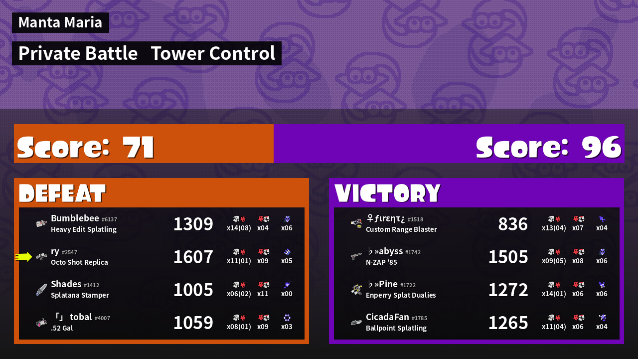 Kills / Deaths | 10 + 1 / 9 > Kill Ratio: 1.11 | ||