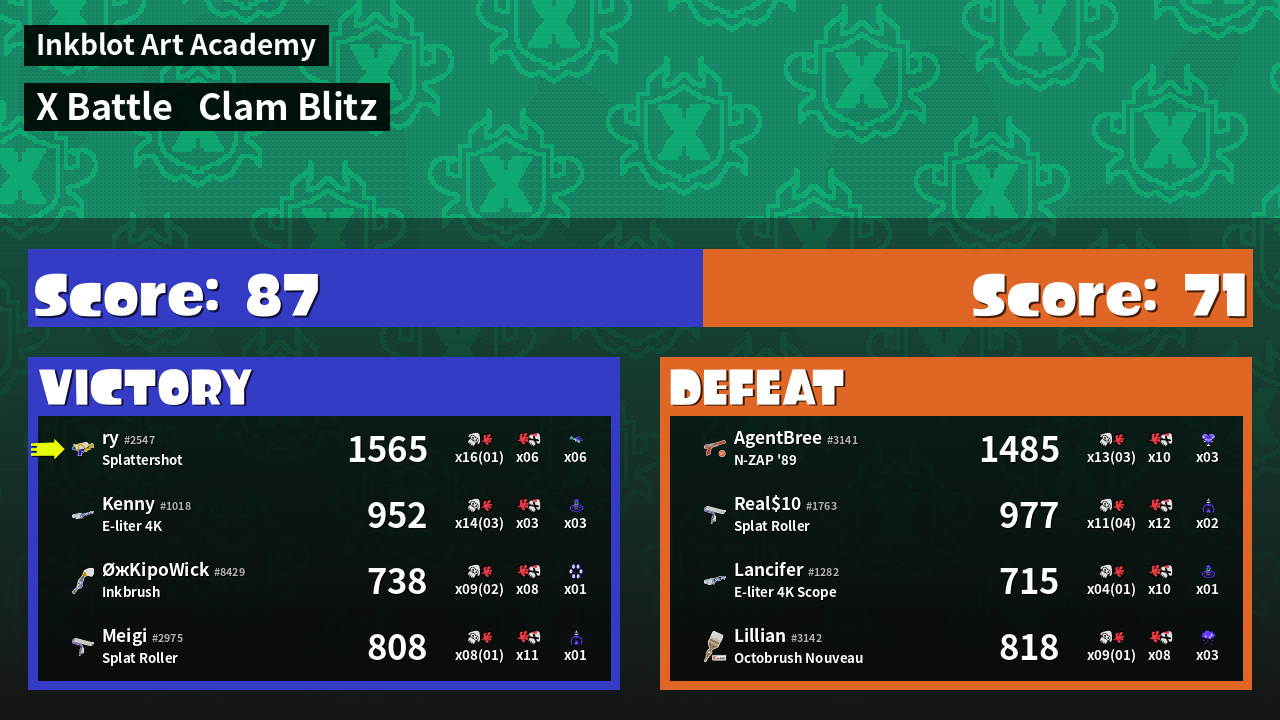 Kills / Deaths | 15 + 1 / 6 > Kill Ratio: 2.50 | ||