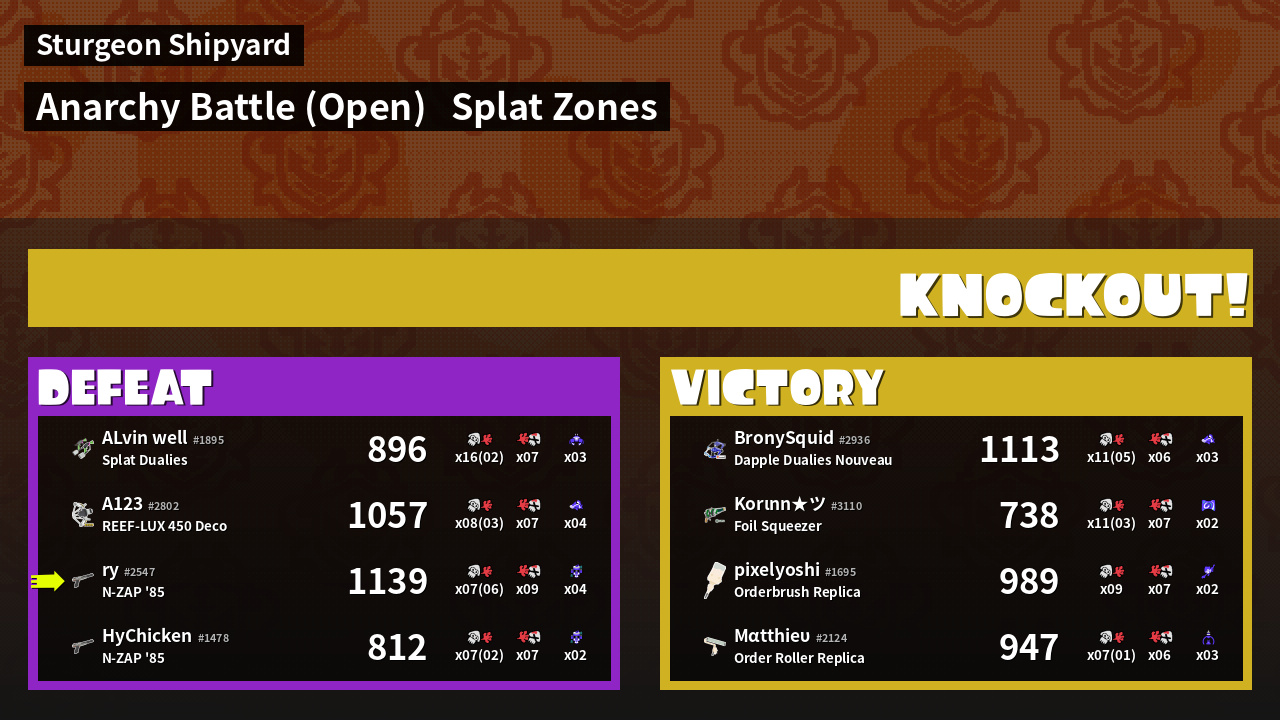 Name | Weapon | Inked | ![]() |