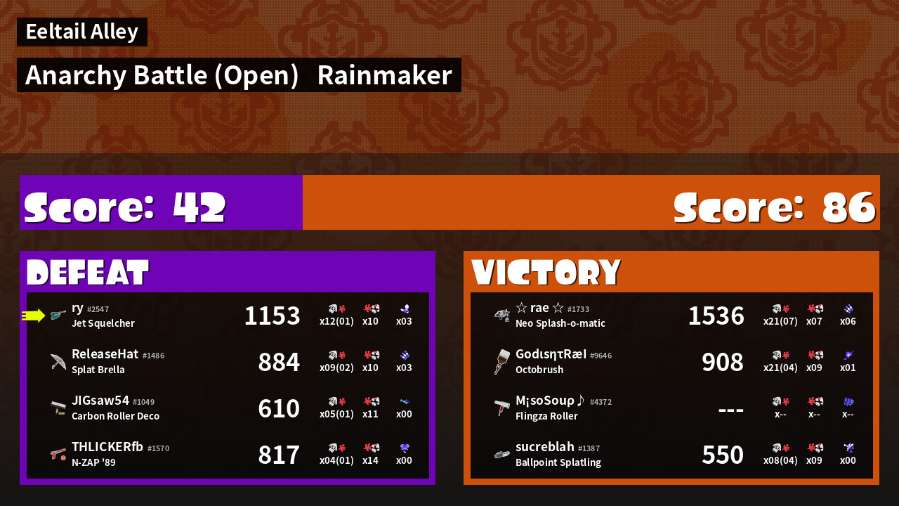 Kills / Deaths | 11 + 1 / 10 > Kill Ratio: 1.10 | ||