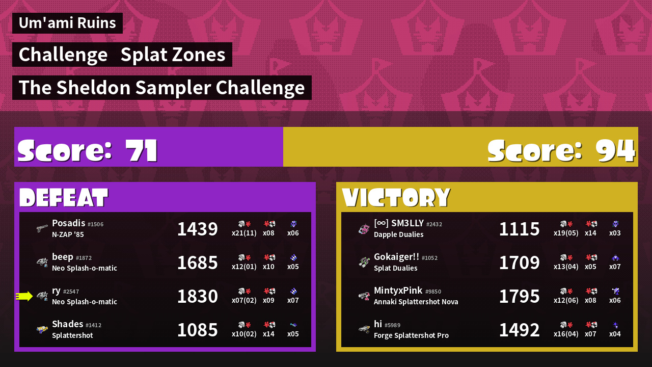 Challenge | The Sheldon Sampler Challenge Make the most of random weapons! | ||
