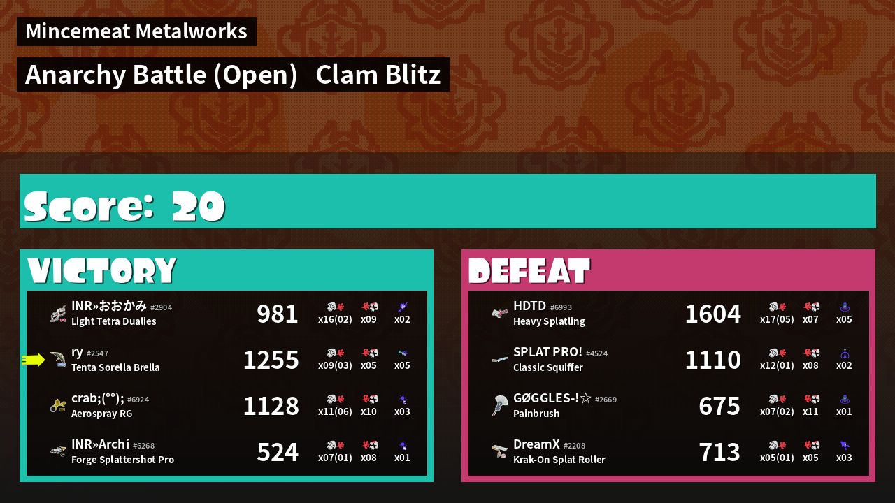 Name | Weapon | Inked | ![]() |