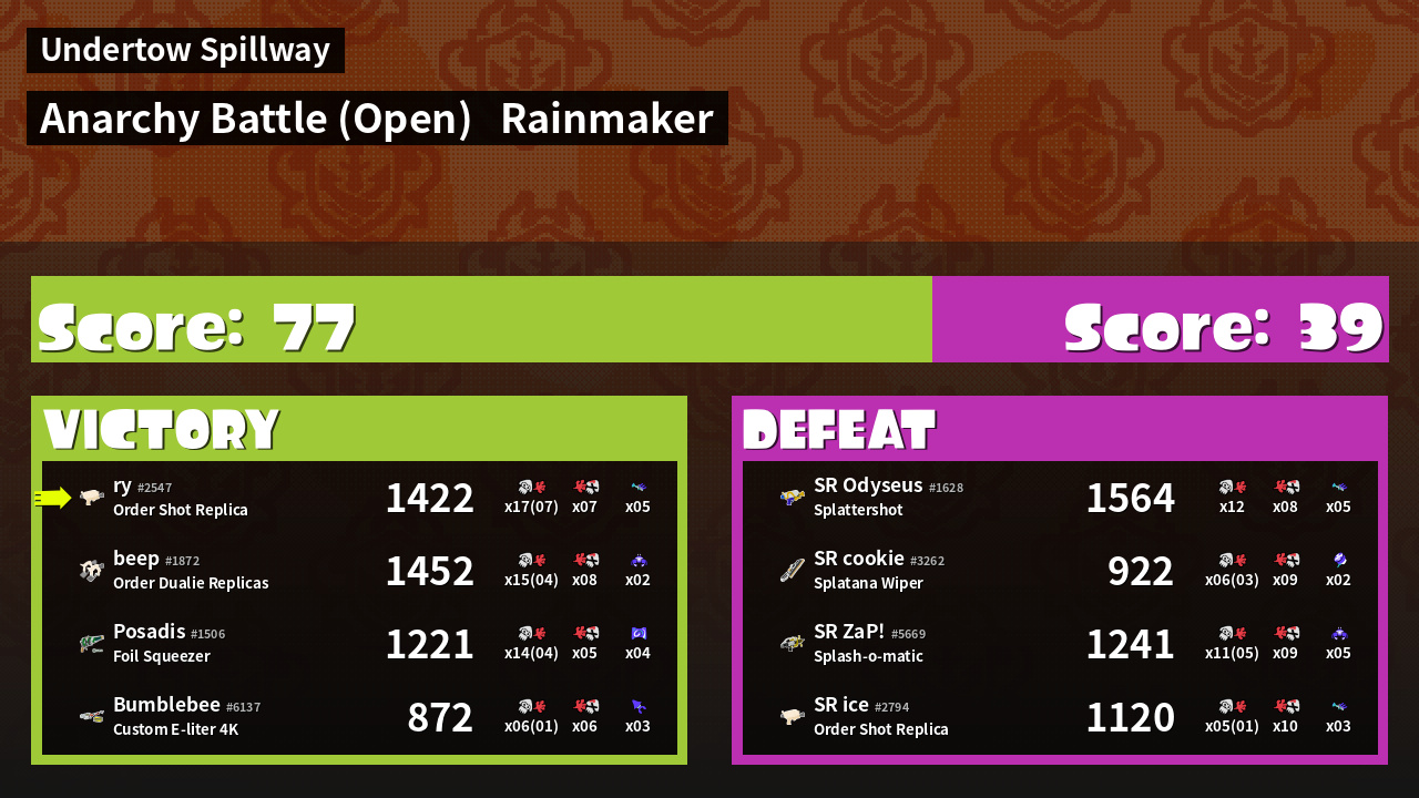 Kills / Deaths | 10 + 7 / 7 > Kill Ratio: 1.43 | ||