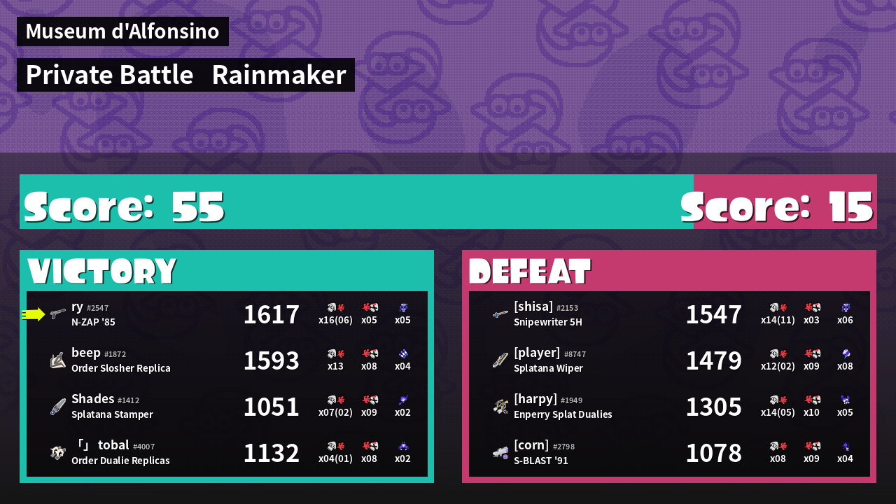 Kills / Deaths | 10 + 6 / 5 > Kill Ratio: 2.00 | ||