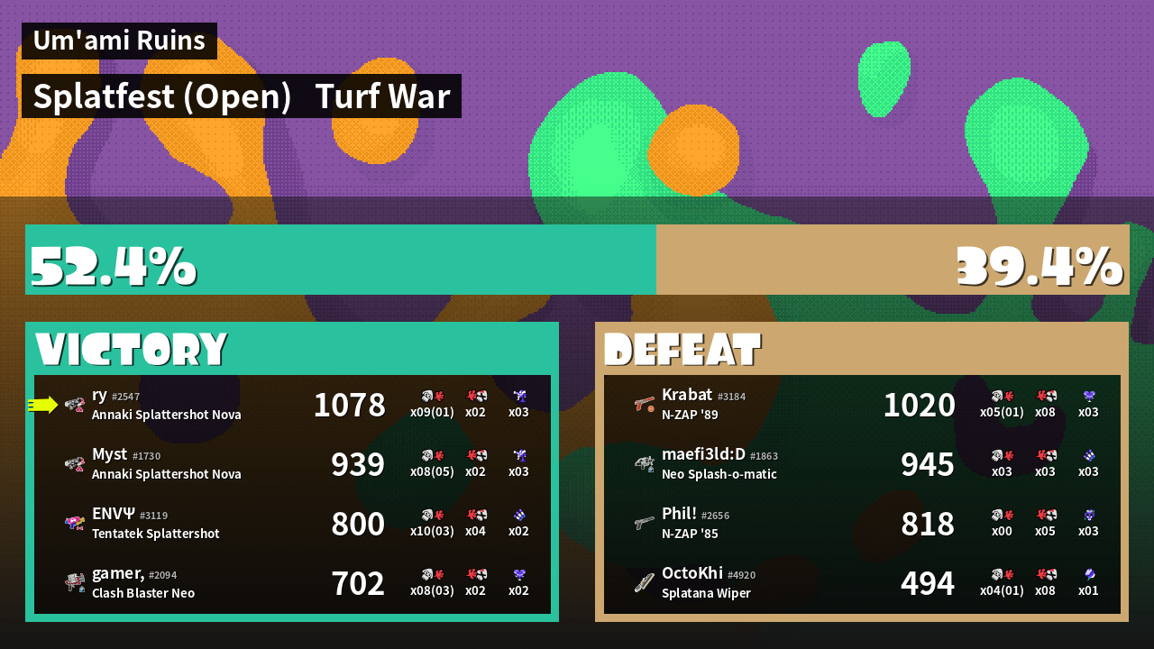 Kills / Deaths | 8 + 1 / 2 > Kill Ratio: 4.00 | ||