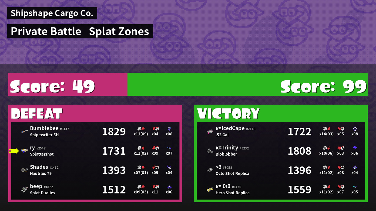Kills / Deaths | 9 + 2 / 9 = Kill Ratio: 1.00 | ||