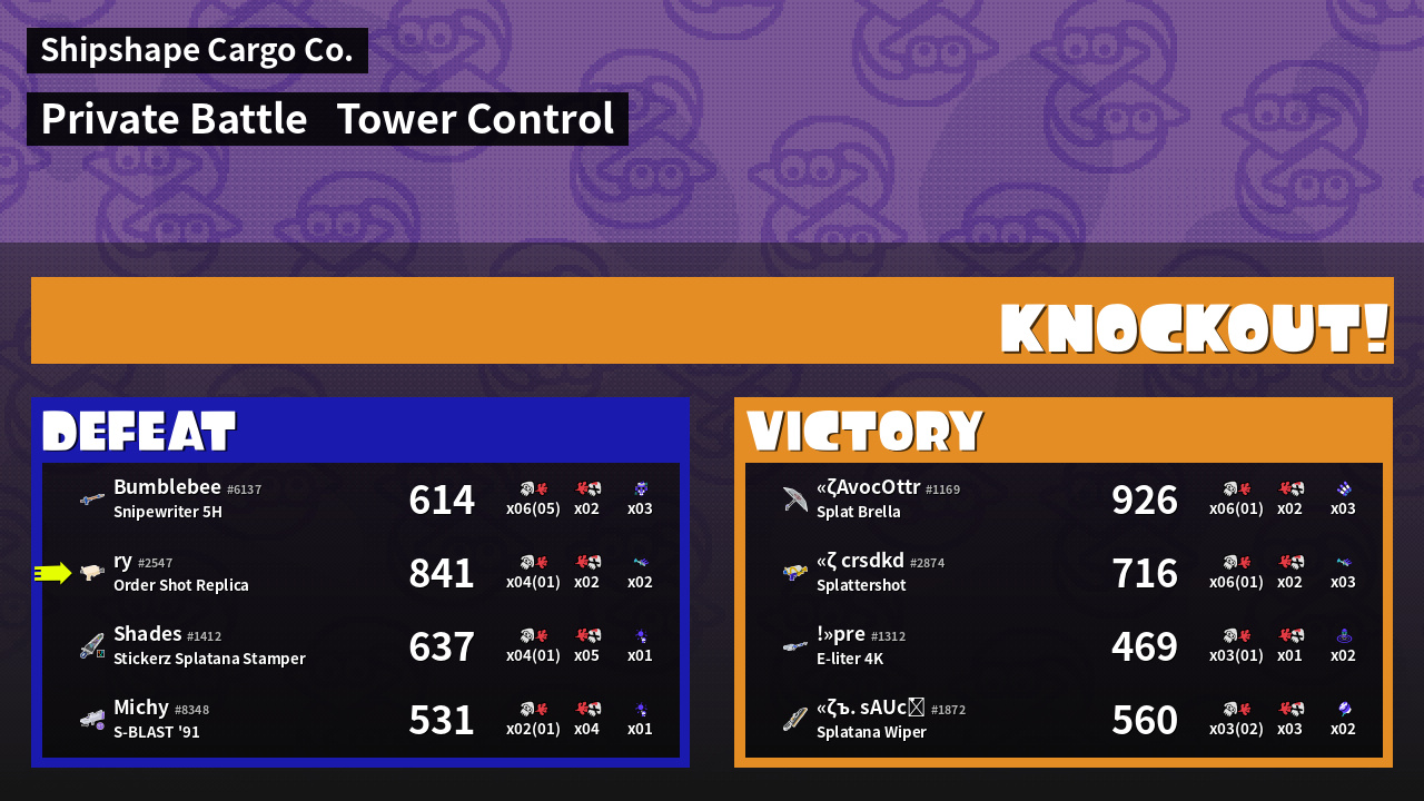 | Medals | #1 Turf Inker #1 Super Jump Spot #1 Enemy Splatter | ||