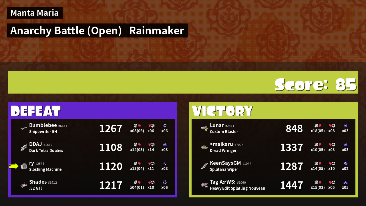 Kills / Deaths | 9 + 4 / 11 < Kill Ratio: 0.82 | ||