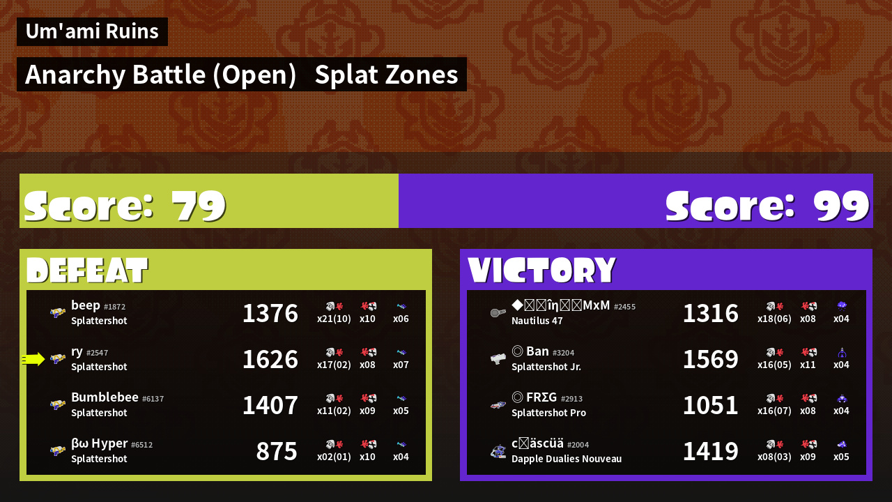 Kills / Deaths | 15 + 2 / 8 > Kill Ratio: 1.88 | ||