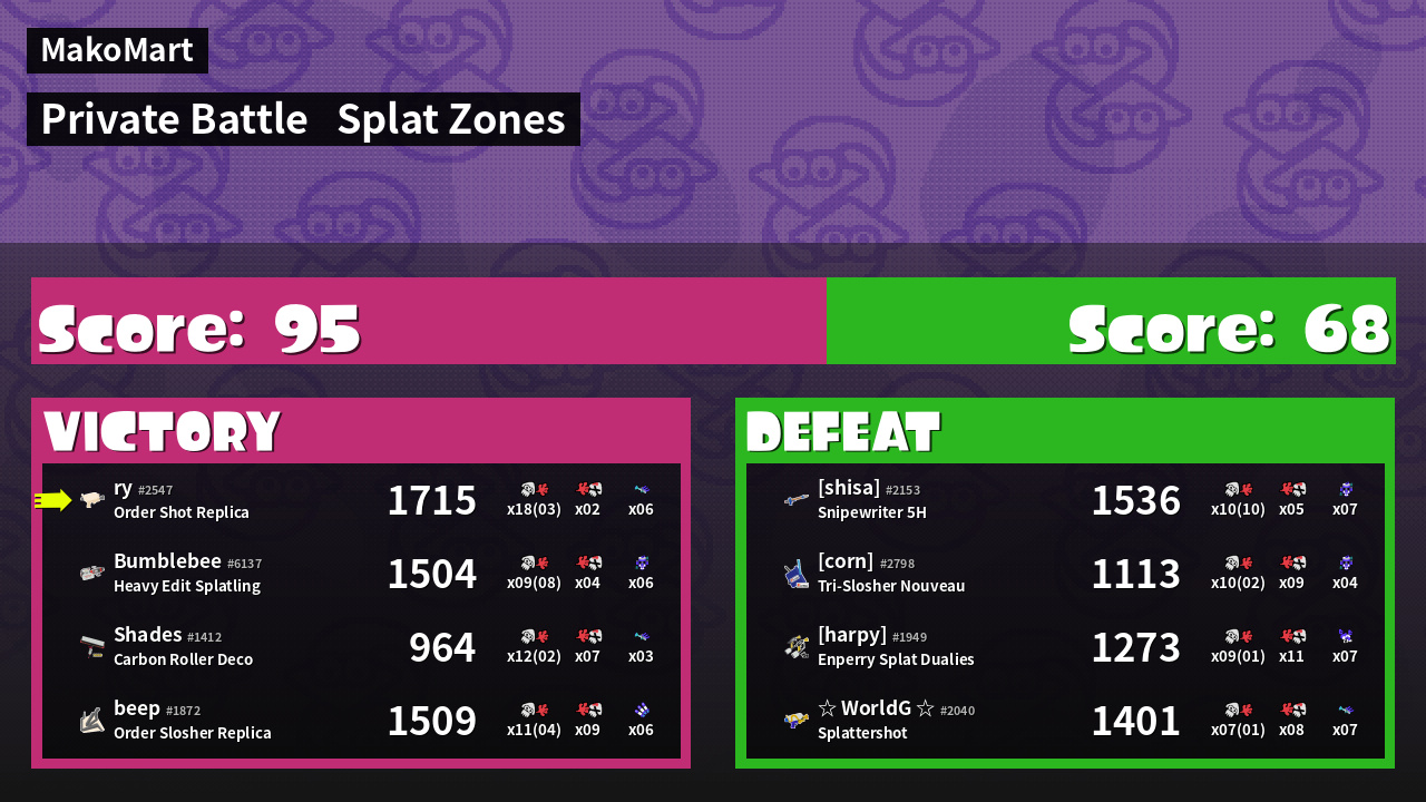 Kills / Deaths | 15 + 3 / 2 > Kill Ratio: 7.50 | ||