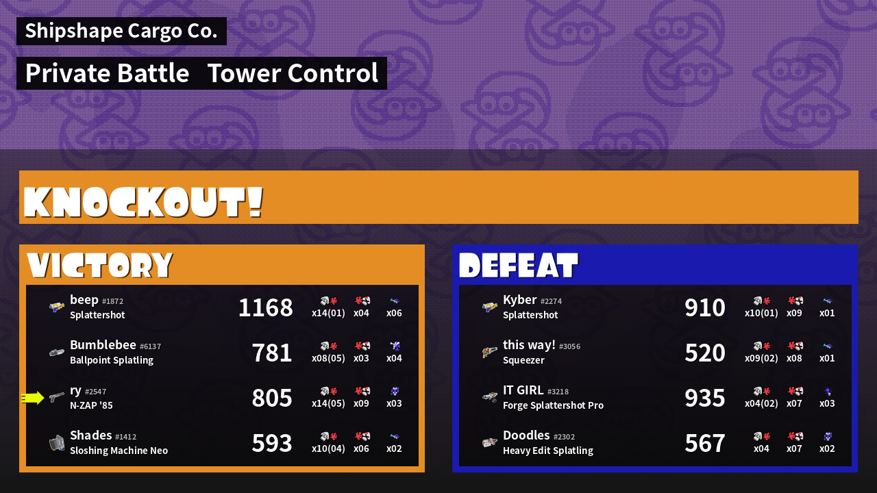 Kills / Deaths | 9 + 5 / 9 = Kill Ratio: 1.00 | ||