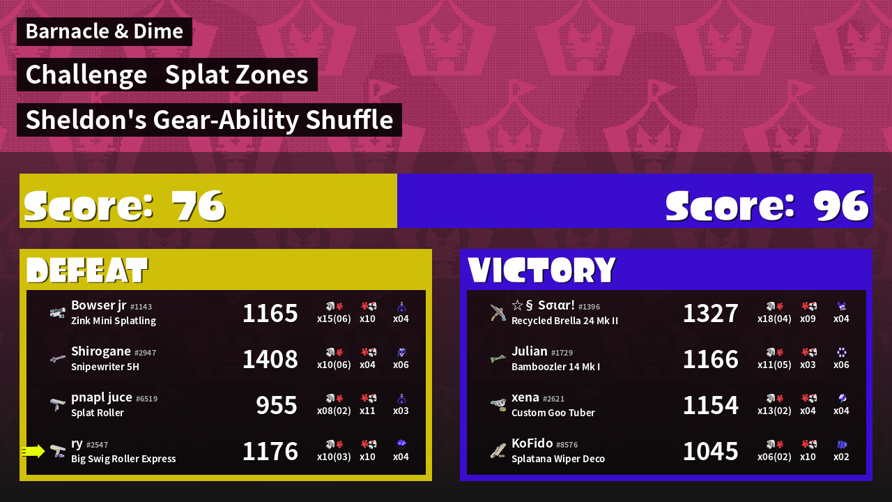 Challenge | Sheldon's Gear-Ability Shuffle Let Sheldon pick your loadout for a battle<br />of random weapons and gear abilities! | ||