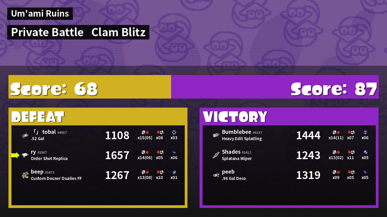 Kills / Deaths | 8 + 6 / 5 > Kill Ratio: 1.60 | ||