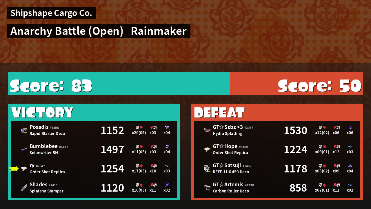 Kills / Deaths | 14 + 3 / 10 > Kill Ratio: 1.40 | ||