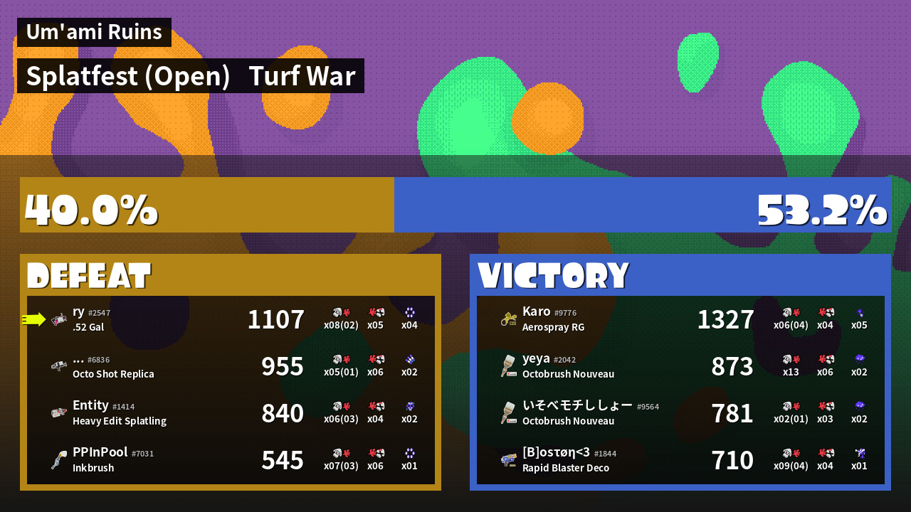 Kills / Deaths | 6 + 2 / 5 > Kill Ratio: 1.20 | ||