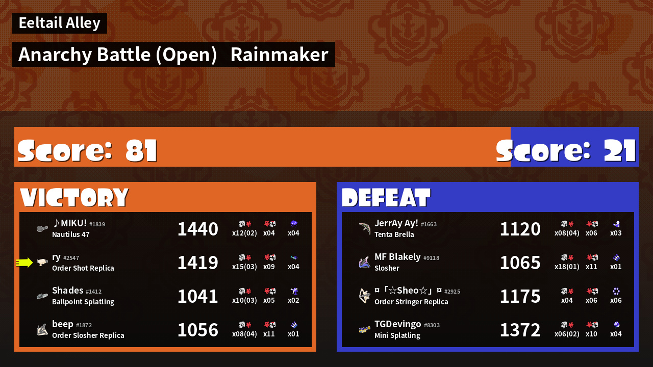 Kills / Deaths | 12 + 3 / 9 > Kill Ratio: 1.33 | ||