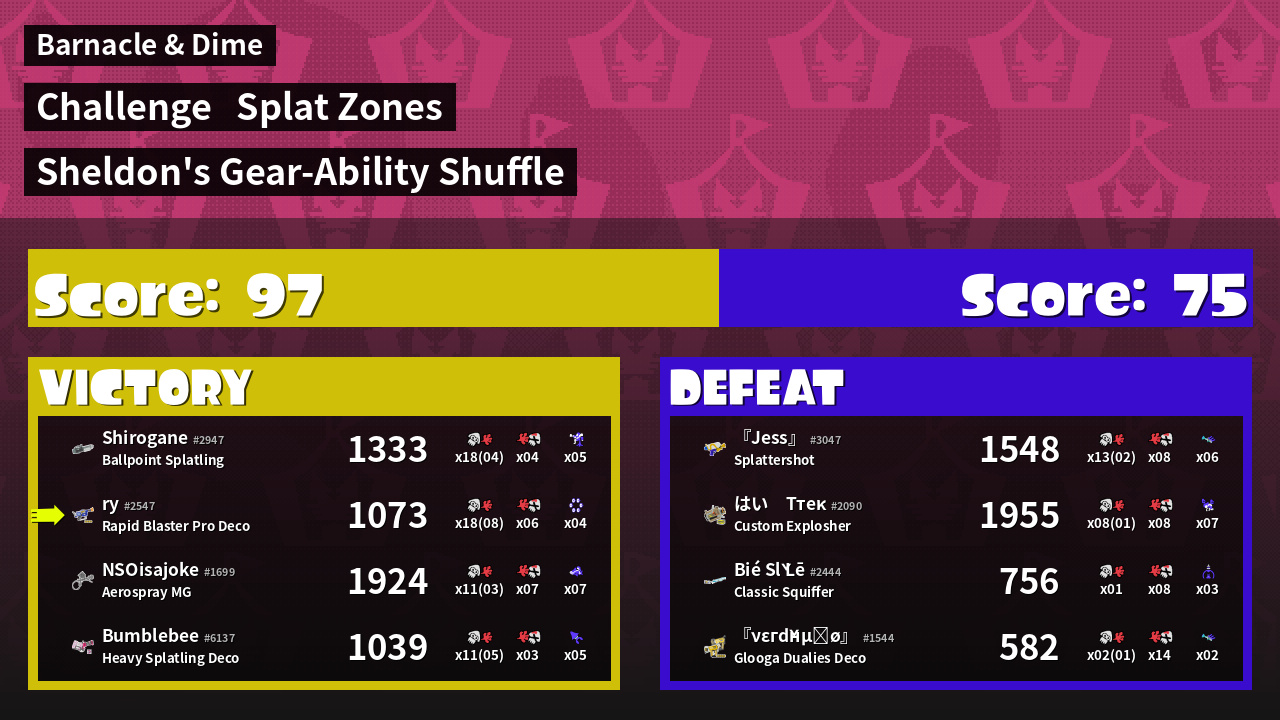 Challenge | Sheldon's Gear-Ability Shuffle Let Sheldon pick your loadout for a battle<br />of random weapons and gear abilities! | ||