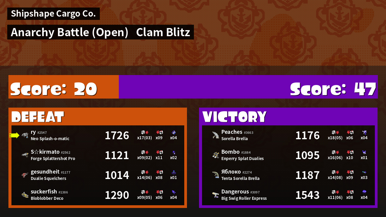 Kills / Deaths | 14 + 3 / 9 > Kill Ratio: 1.56 | ||