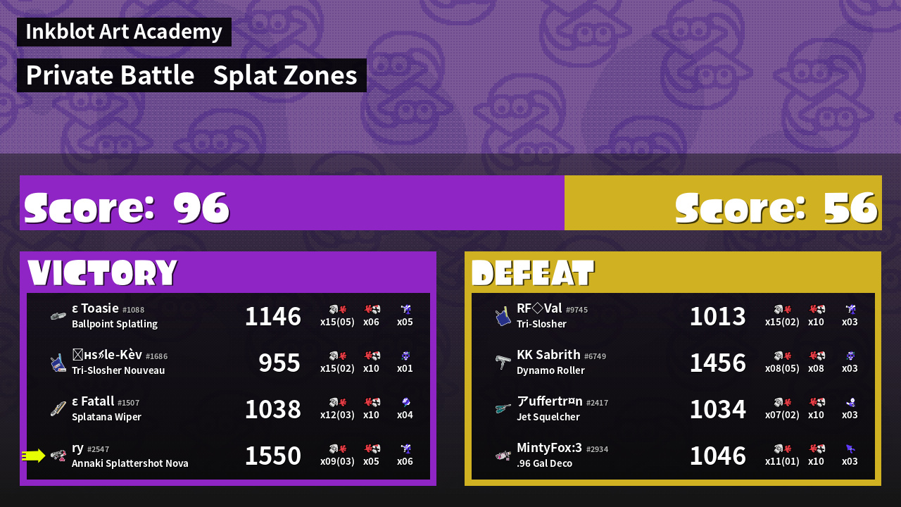 Kills / Deaths | 6 + 3 / 5 > Kill Ratio: 1.20 | ||
