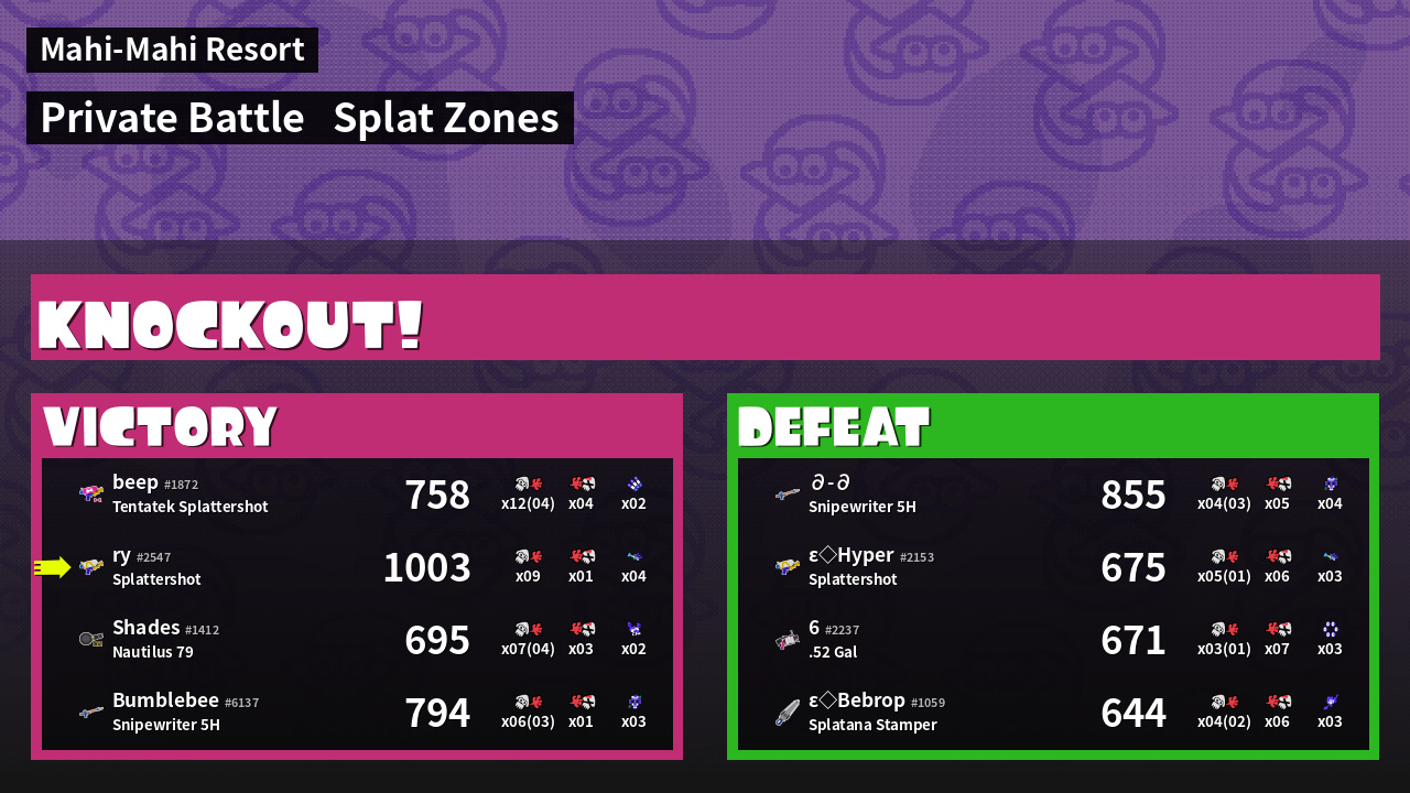 Kills / Deaths | 9 + 0 / 1 > Kill Ratio: 9.00 | ||