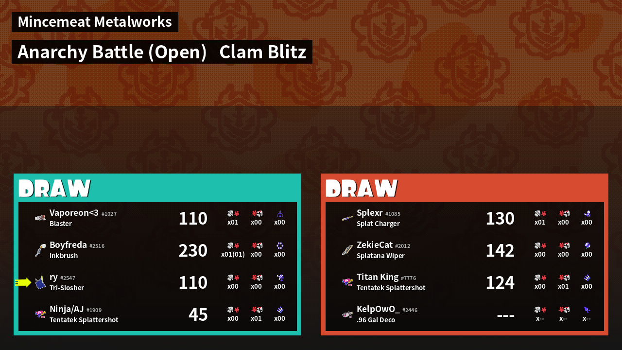 Kills / Deaths | 0 + 0 / 0 = Kill Ratio: 1.00 | ||