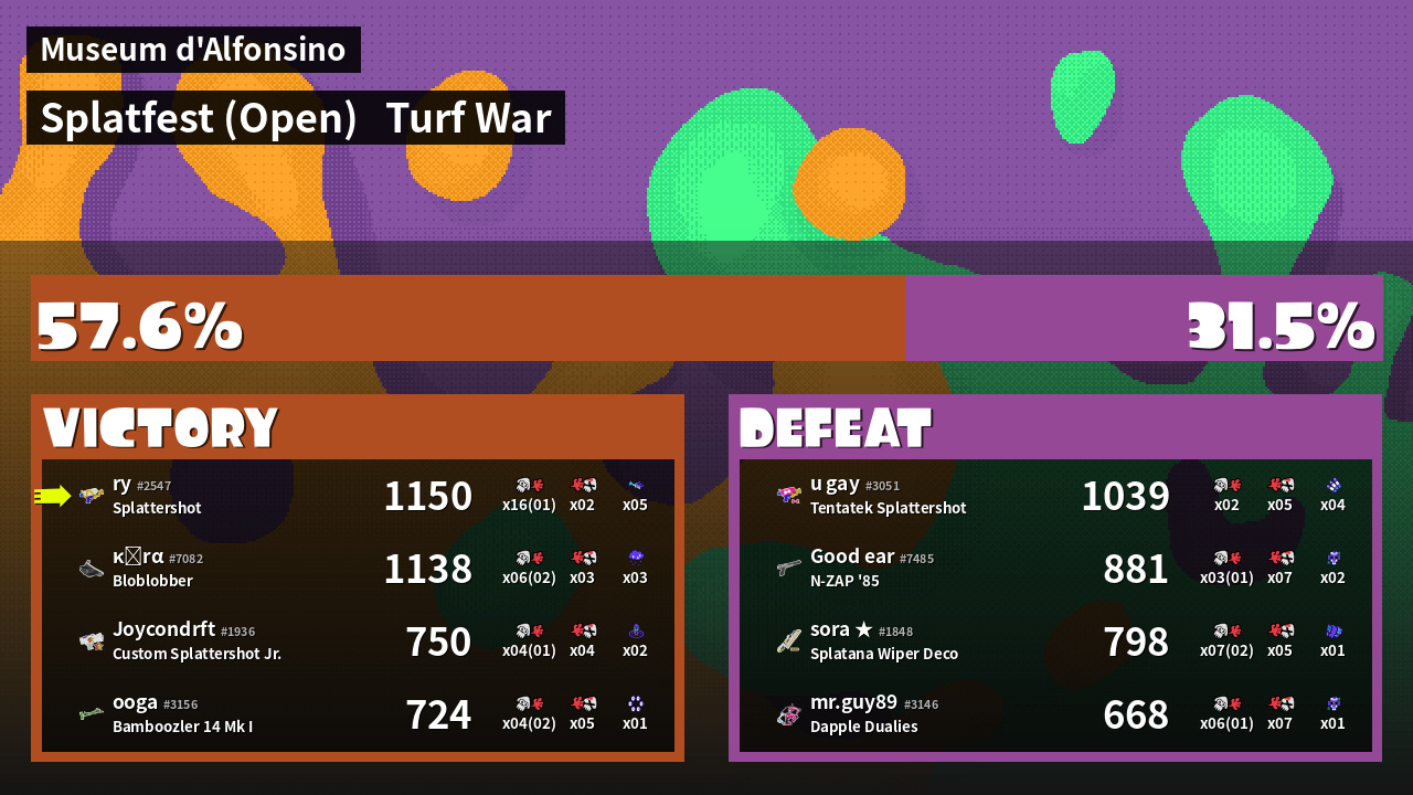Kills / Deaths | 15 + 1 / 2 > Kill Ratio: 7.50 | ||