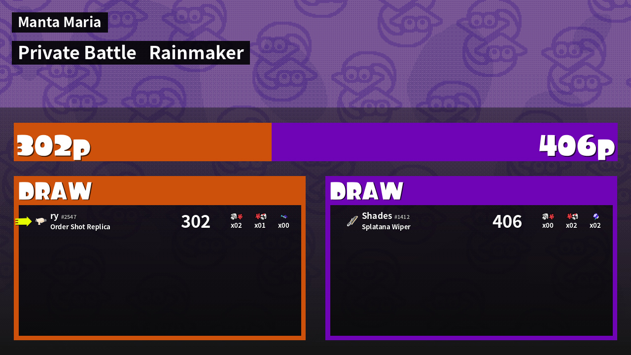 Kills / Deaths | 2 + 0 / 1 > Kill Ratio: 2.00 | ||
