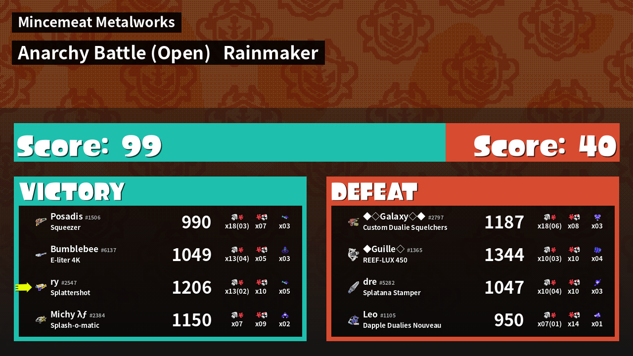 Kills / Deaths | 11 + 2 / 10 > Kill Ratio: 1.10 | ||
