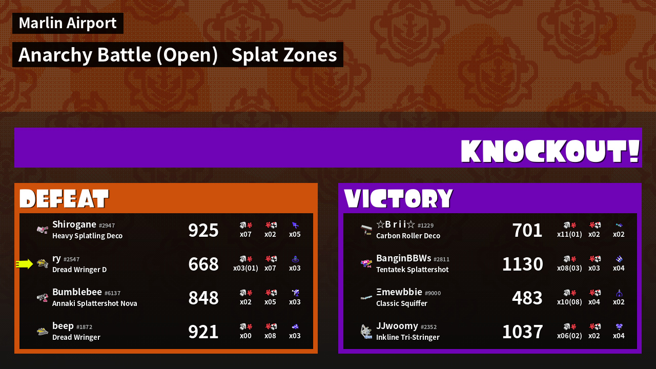 Name | Weapon | Inked | ![]() |
