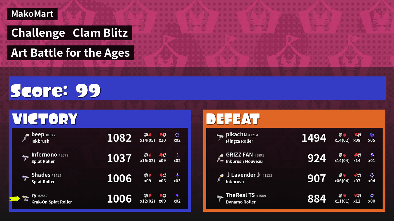 Kills / Deaths | 10 + 2 / 9 > Kill Ratio: 1.11 | ||