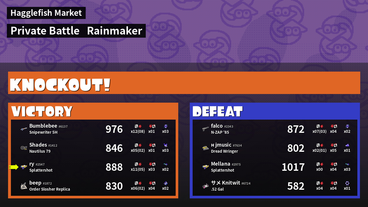 Kills / Deaths | 6 + 5 / 3 > Kill Ratio: 2.00 | ||