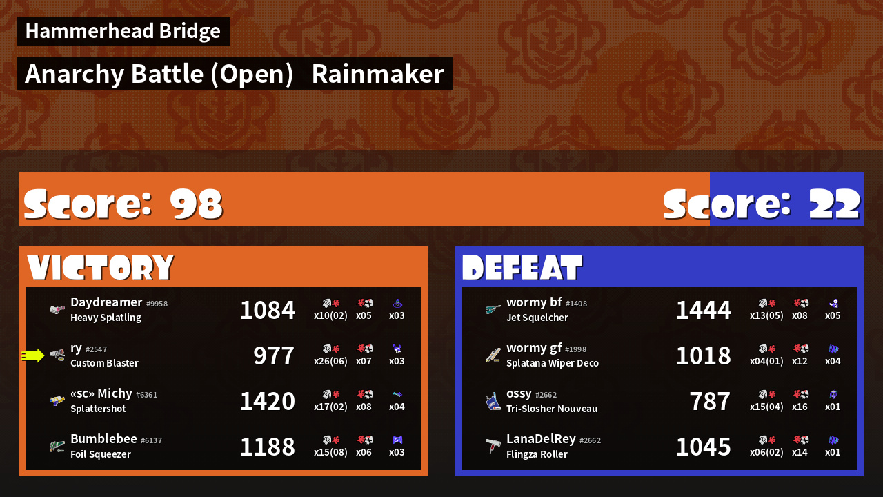Kills / Deaths | 20 + 6 / 7 > Kill Ratio: 2.86 | ||